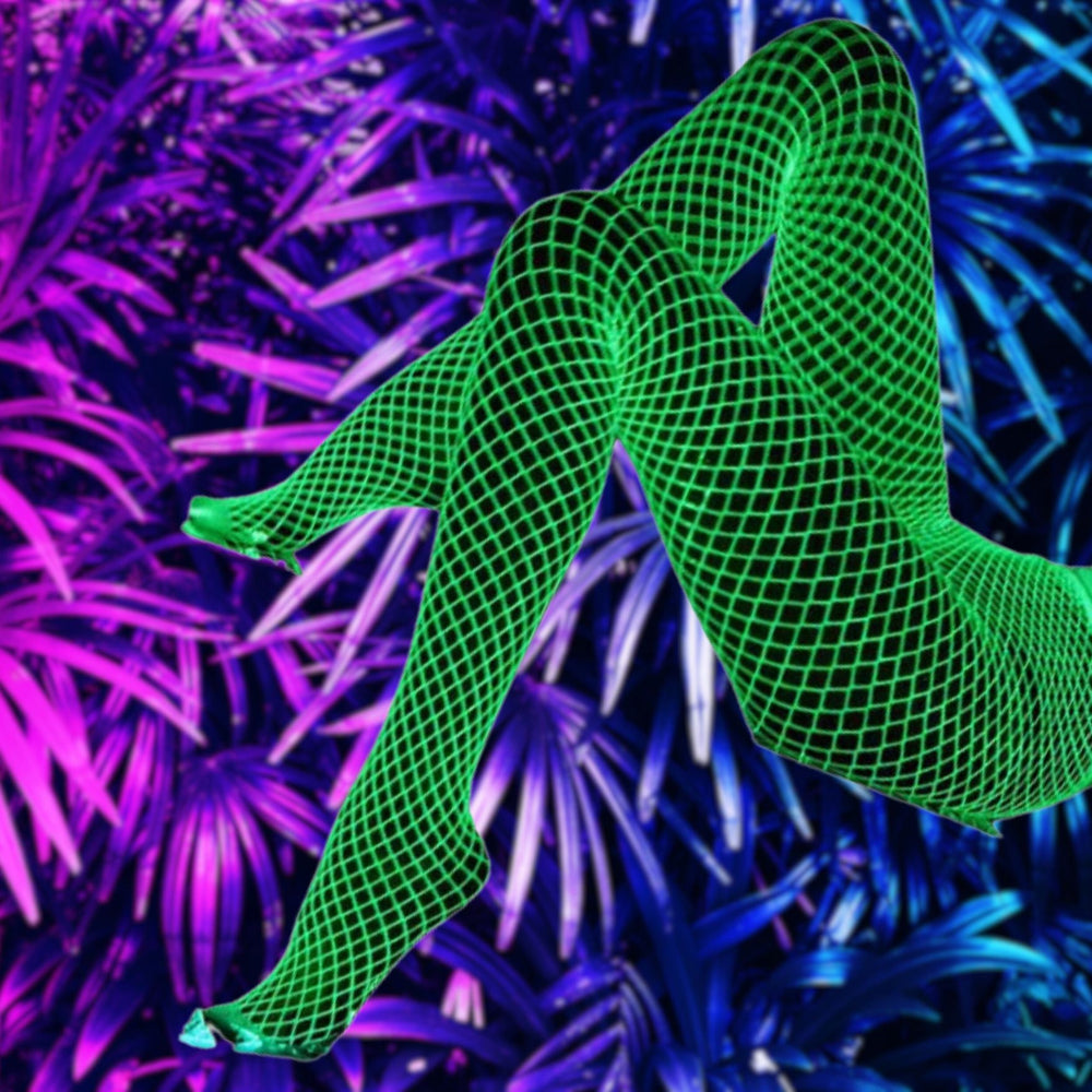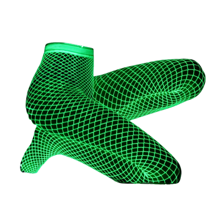 Crafted from a blend of nylon and spandex, these stockings hug your legs with just the right amount of stretch, ensuring comfort without compromising on the wow factor. The luminous fabric catches the light as you move, creating a stunning visual effect that guarantees all eyes on you. Whether you're dancing under the disco lights or strutting through a festival, these stockings turn your every step into a radiant display of self-expression.