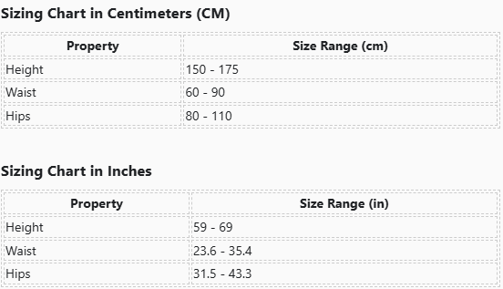 | Waist | 60 - 90 |