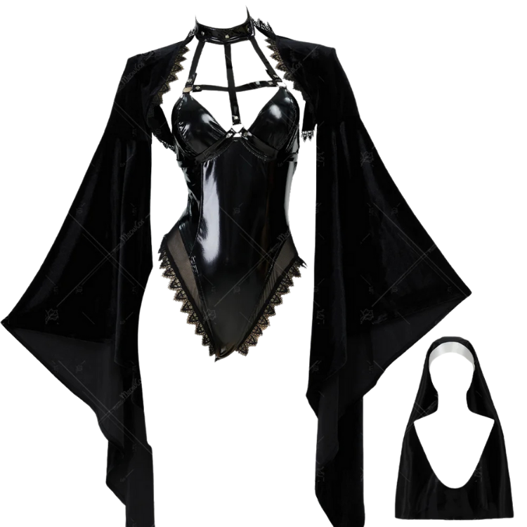 Gothic Holy Nun Halloween Cosplay Bodysuit Product Details: