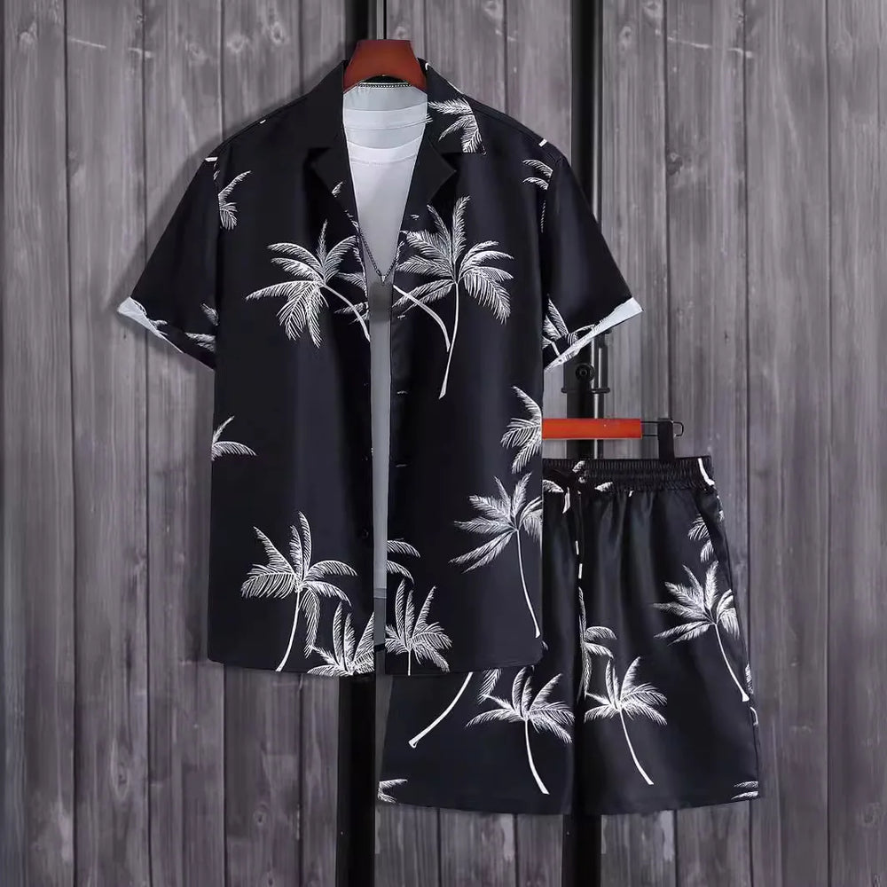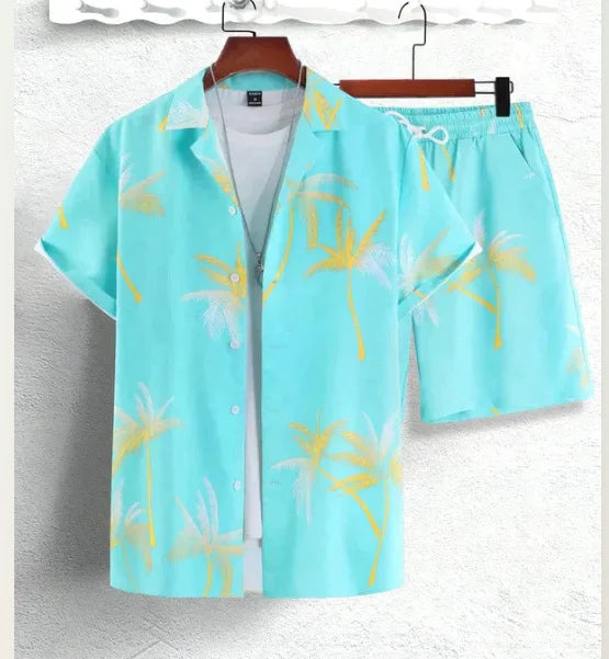 Bring the Tropical Vibes with the Hawaiian Floral Short Sleeve Shirt + Shorts (2 Piece Outfit)