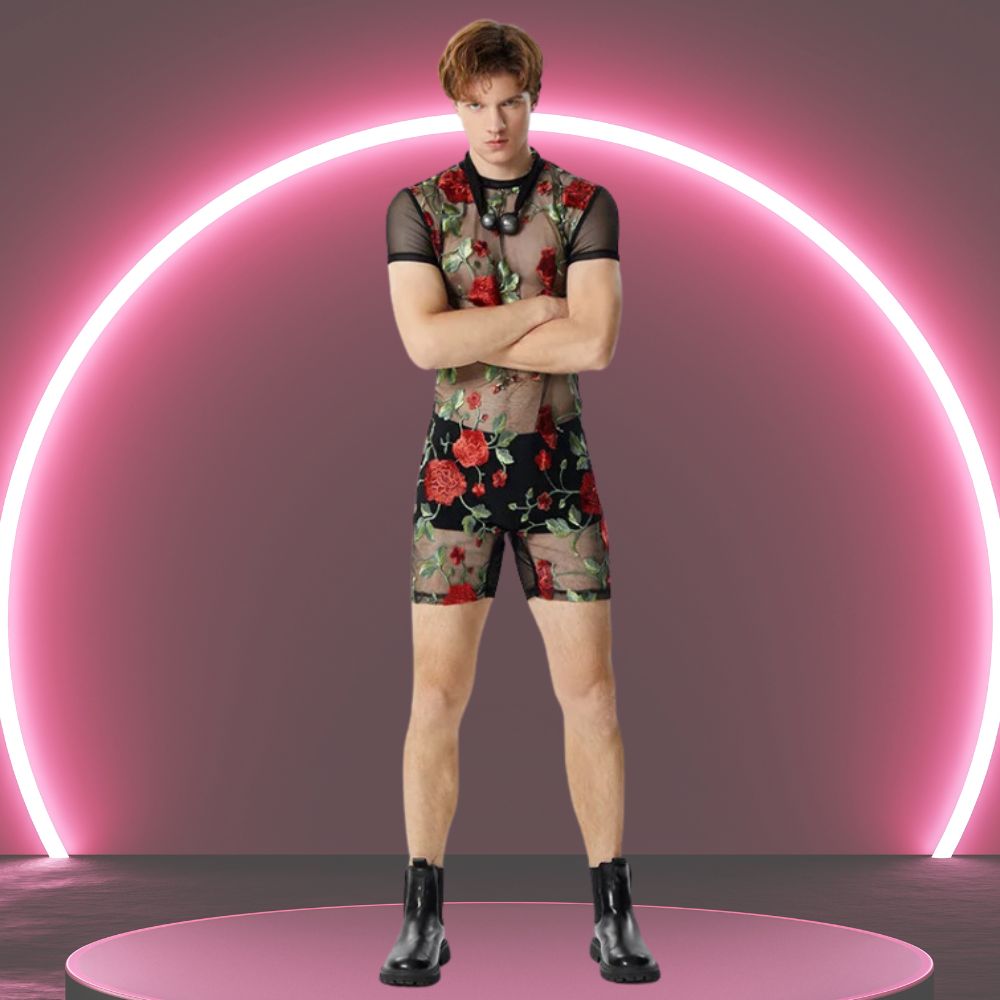 Not just a pretty outfit, the Floral Rose Mesh Romper speaks the language of confidence. Slip into this ensemble and feel the surge of self-assurance that comes from wearing something that perfectly expresses your queer fabulousness. It's a declaration of pride, a nod to the bold and the beautiful, and a tribute to those who live their truth with every step. Pair it with your fiercest boots or highest heels, and let the world know you've arrived!