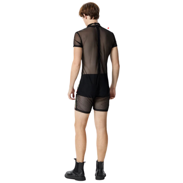 With its delicate rose patterns intricately woven through lightweight, breathable mesh, this romper invites a playful tease of what lies beneath, serving serious sex appeal with a side of mystery. It’s all about feeling as fabulous as you look, with a design that hugs all the right places, ensuring every entrance is as stunning as a runway finale at Paris Fashion Week. Whether you're voguing through a night out with friends or making an unforgettable appearance at a pride parade, this romper is your new go-to for making memories.