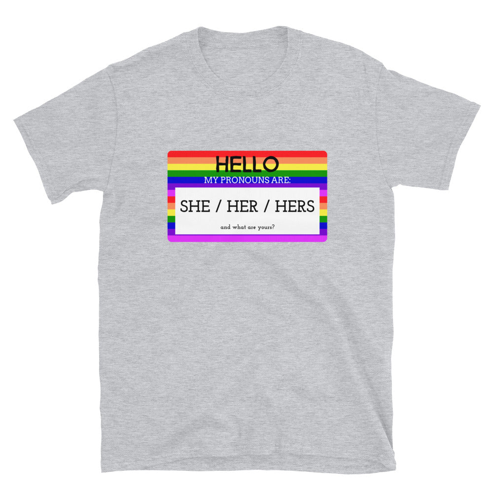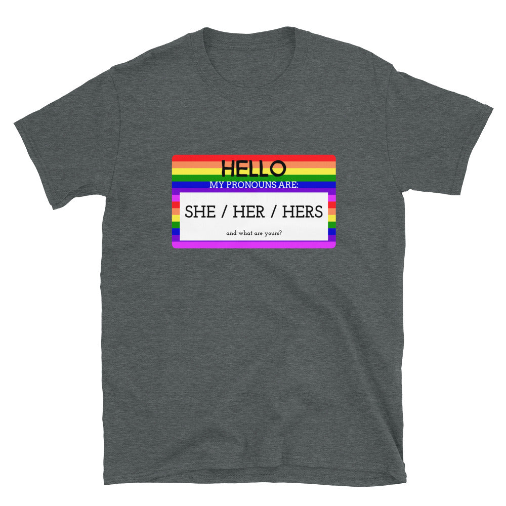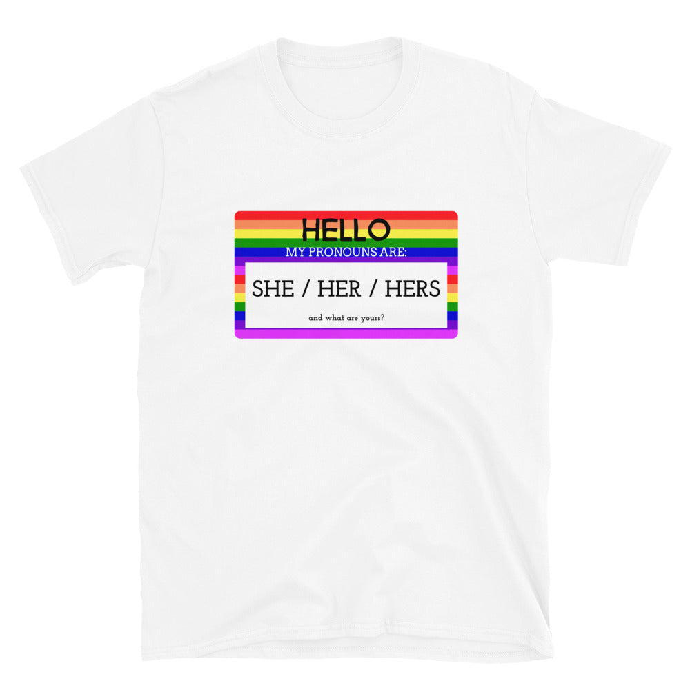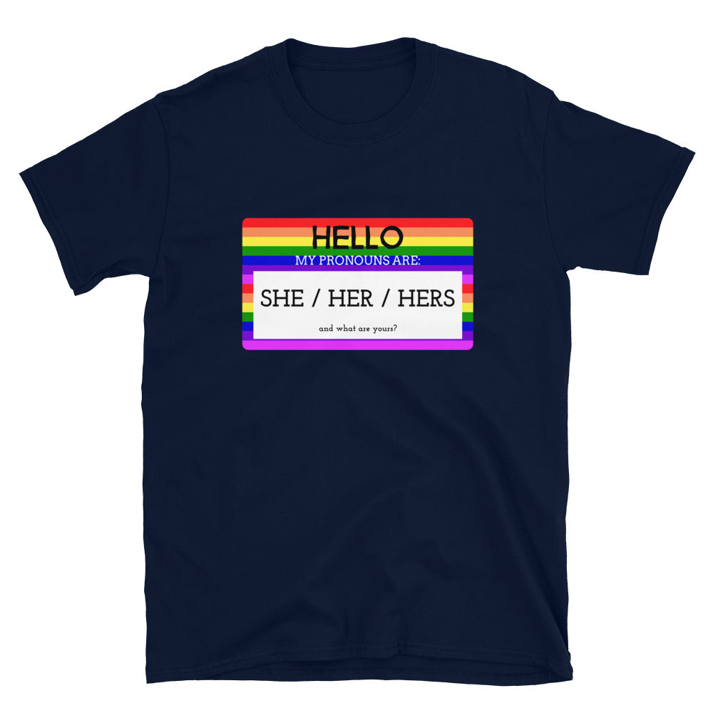 Relax, you've now found the staple t-shirt of your wardrobe! And a easy way to offer your pronouns first in a conversation.