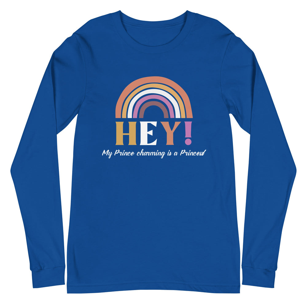 HEY! MY PRINCE CHARMING IS A PRINCESS! UNISEX LONG SLEEVE T-SHIRT PRODUCT DETAILS