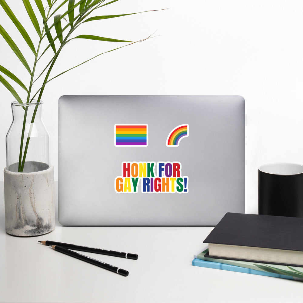 Where do these fabulous Hong For Gay Rights stickers belong? ABSOLUTELY ANYWHERE YOU PLEASE! ... We recommend on your bumper so on the drive to Pride you can enjoy the chorus of honks that accompany you there.