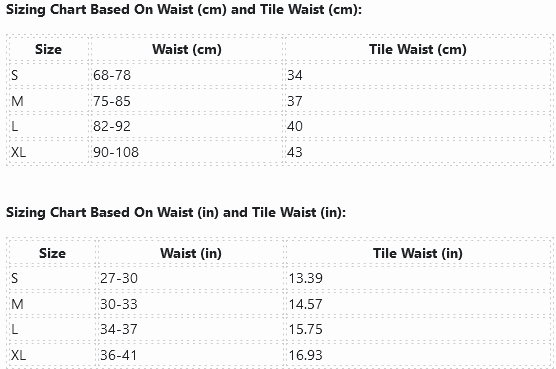 Sizing Chart Based On Waist (cm) and Tile Waist (cm):