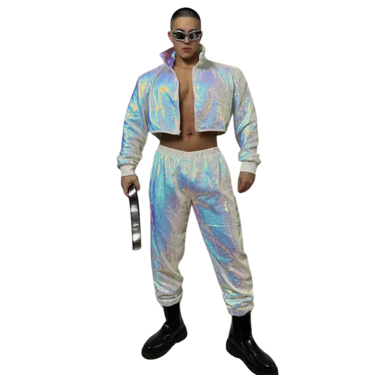 Get ready to channel your inner diva with our Iridescent Retro Sequin Two Piece Clubwear Set, a dazzling ensemble that's as bold and unique as you are. Perfect for the queer community who loves to express themselves unapologetically, this set is a tribute to the vibrant spirit of gay pop culture. Whether you're voguing on the dance floor or strutting your stuff at a pride parade, this outfit is guaranteed to make you feel like the star you are.