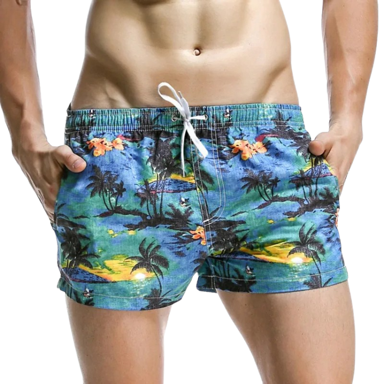 Pumped with vivid hues and a design that screams 'beach runway,' these shorts are not just a garment; they're your ticket to feeling like a coastal deity. Imagine this: a beach party where every head turns, not just for the setting sun but because your presence lights up the horizon. Our Island Fantasy Swim Shorts are about making those moments happen, ensuring that your derrière and calves are not just seen but celebrated with every step you take.