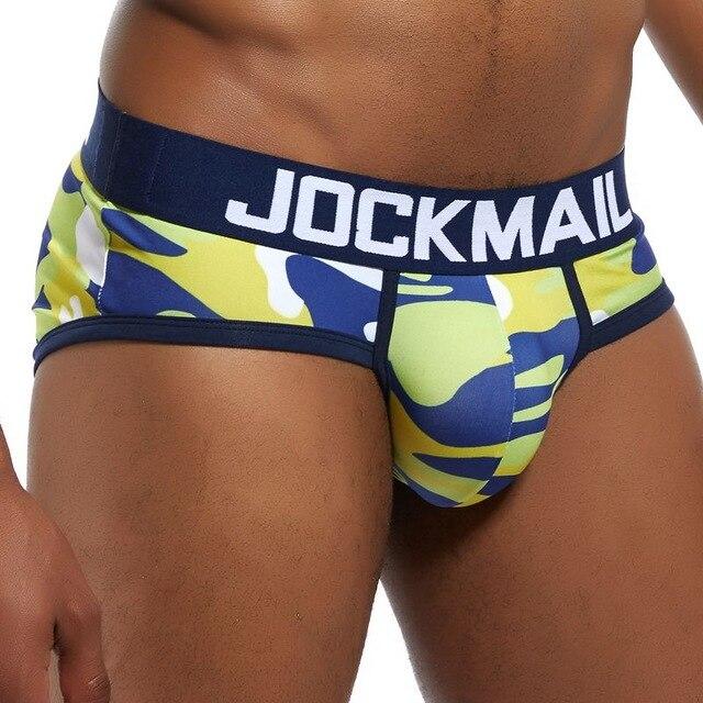 That's why Jockmail has a range of sexy camo briefs that include the conventional green and brown and black and white and more interesting color mixes like red and blue.