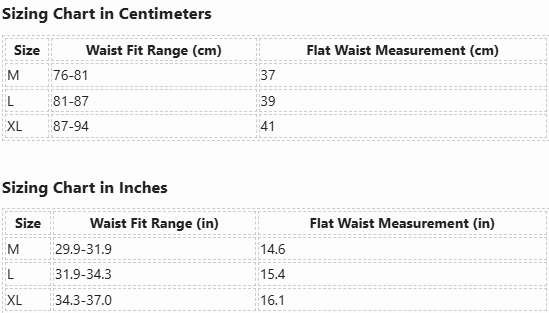 | Size | Waist Fit Range (cm) | Flat Waist Measurement (cm) |
