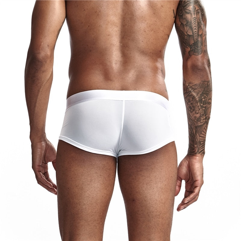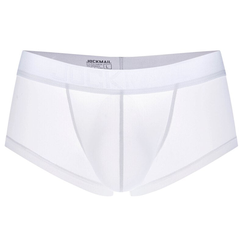 These Jockmail Ultra-Thin Boxers are made with a breathable nylon/spandex blend for comfort and style. It will cradle your package while being thin (but not transparent) and incredibly pleasing to the touch.