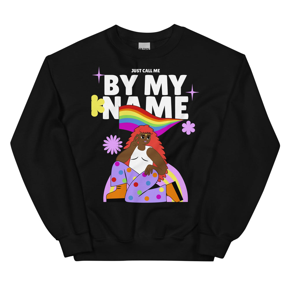 Wrap yourself in the splendor of queer warmth with our one-of-a-kind Just Call Me By My Name Unisex Sweatshirt, a singular garment designed to radiate pride, joy, and a touch of sass with every thread. This isn't just a sweatshirt; it's a declaration of fabulousity, a cozy must-have for your queer wardrobe that ensures you’re wrapped in Pride, whether you're cuddling on the couch or making a statement in the streets.