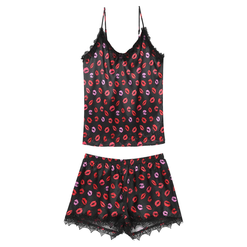 Lace Trim Lover Pajama Set With Shorts Product Details: