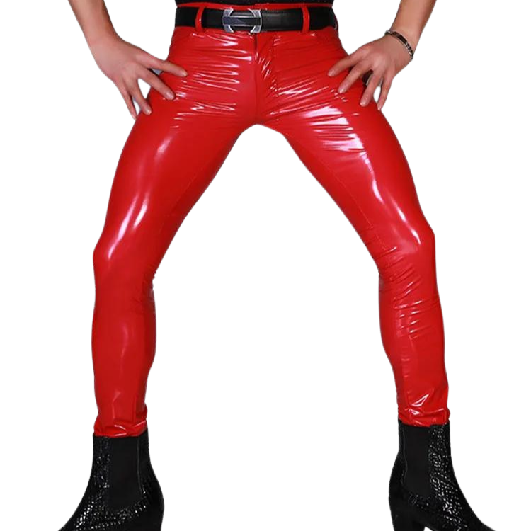 The Latex Luxe Biker Skinny Leather Pants combine the daring of latex with the classic edge of faux leather, creating a look that's both contemporary and timeless. And remember, darling, in these pants, you're not just a part of the crowd; you're leading the parade. Let the world know you're here, you're queer, and you're fabulous!