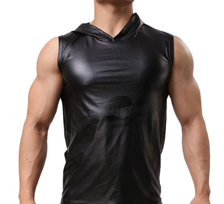 Say 'No' to the dull, and yes to feeling utterly sexy with this Leather Mens Tank Top With Hood + Sexy Shorts combo. Perfect for Pride festivals, circuit parties, Halloween, chilling by the pool, or pumping gas at 2 am on the side of the interstate.