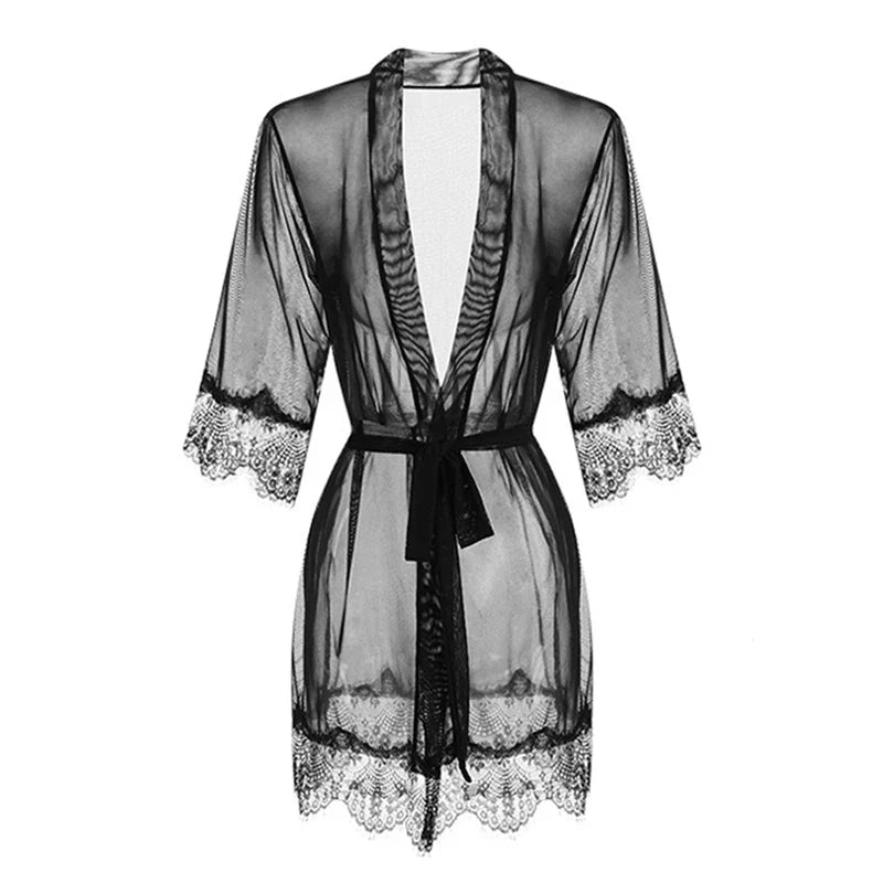 With its intricate lace and mesh design, this robe is for those who aren't afraid to stand out, for the trailblazers of style and the architects of their own joy.