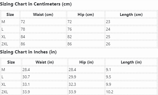 | Size | Waist (cm) | Hip (cm) | Length (cm) |