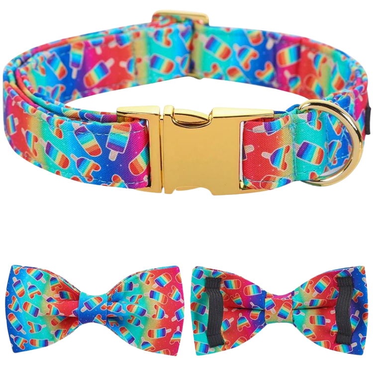 Adorned with a delightful rainbow popsicle pattern, this collar is designed to spread joy and pride with every wag and walk. Imagine your beloved pet turning heads and melting hearts, embodying the essence of pride with every step. This collar is not just an accessory; it's a declaration of love, inclusivity, and the sweet taste of freedom.