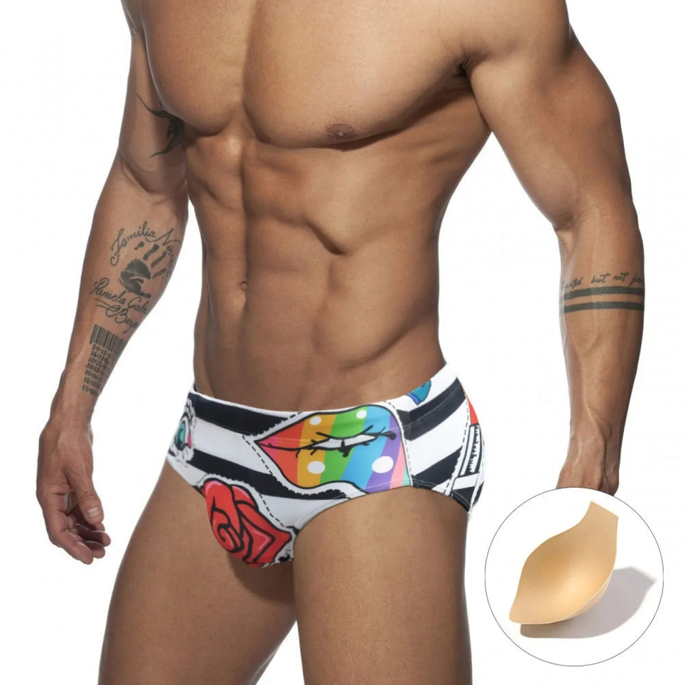 Dive into a pool of fabulousness with our Lips n' Kisses Playful Swim Briefs! Designed for those who love to splash in style, these swim briefs are a celebration of pride and personality. Perfect for the queer community and allies alike, they are a sizzling addition to your summer wardrobe.