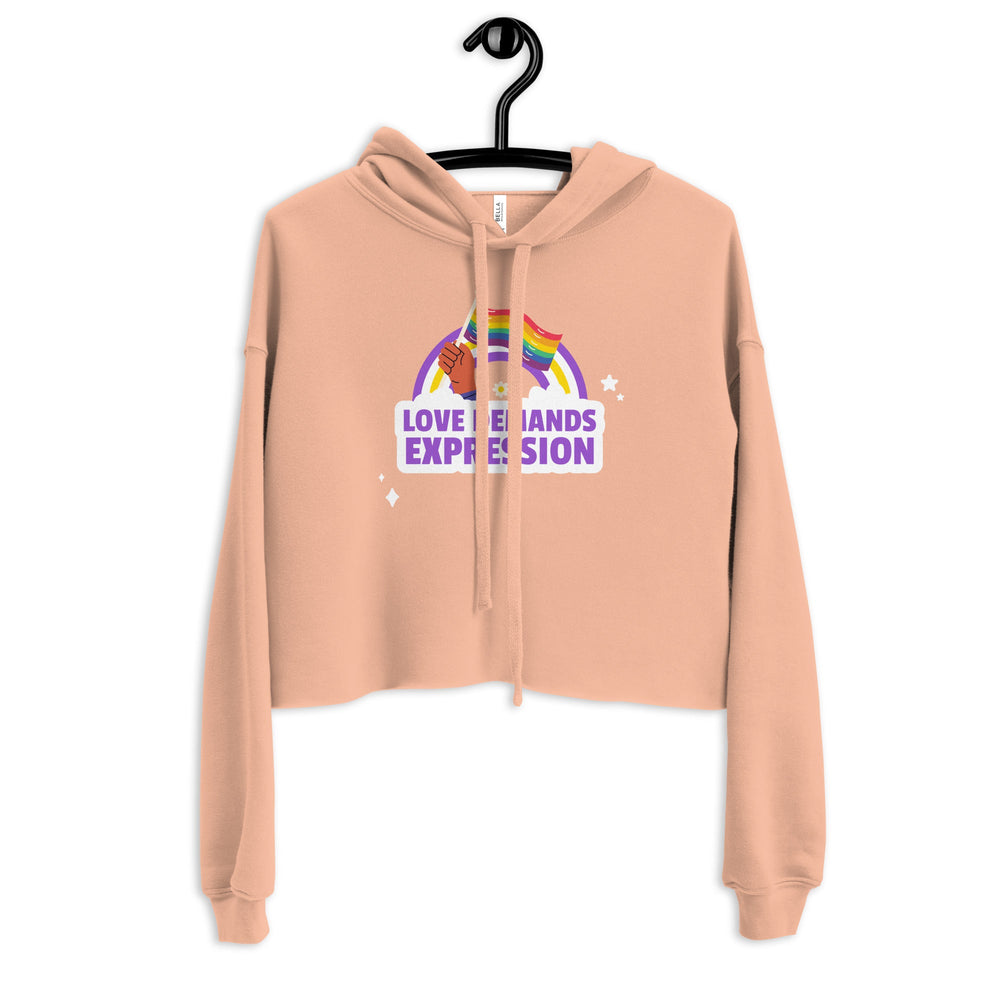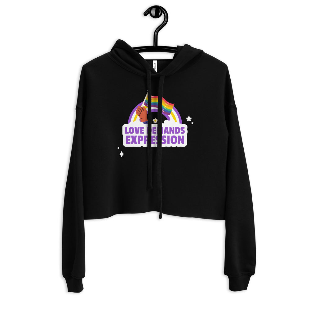 Honey, it's time to let the latest in queer fashion not just enter but absolutely conquer your wardrobe with our breathtaking, unapologetically fabulous statement piece: the Love Demands Expression Crop Hoodie .