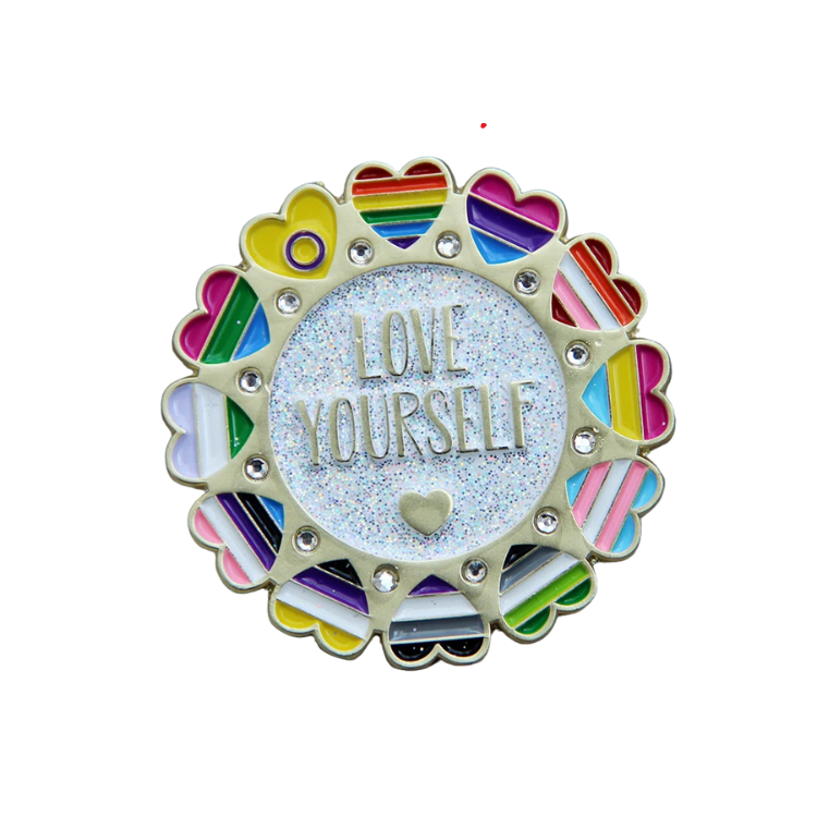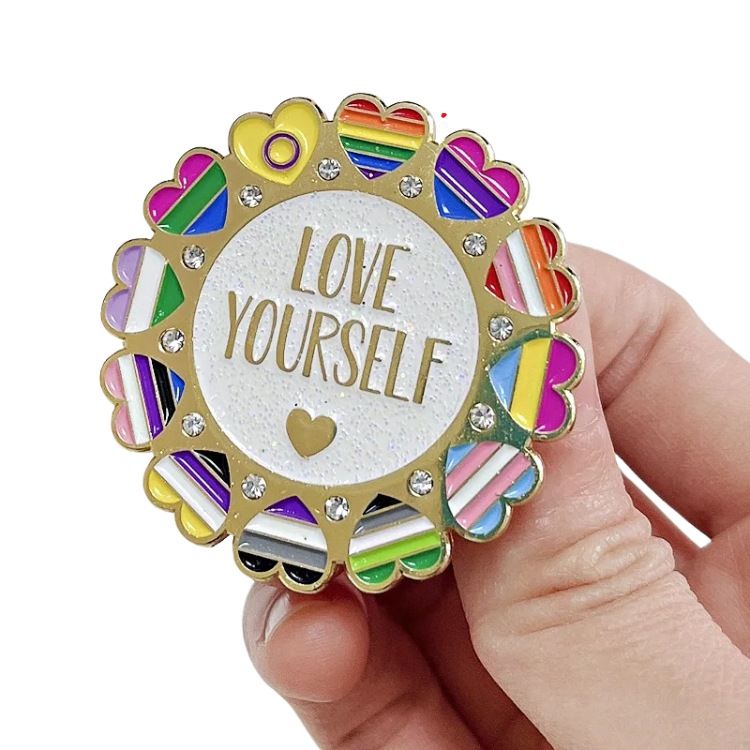 Whether you're stepping out to a pride parade, a casual meet-up, or just living your day-to-day fabulous life, the Love Yourself Rainbow Enamel Pin is the perfect companion to remind you and the world around you to embrace every shade of your true colors. It’s small enough to be subtle but bold enough to make a statement, ensuring that your pride shines through, no matter the occasion.