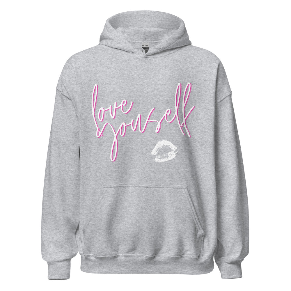 This Love Yourself! Unisex Hoodie? It’s not just soft, it’s like wrapping yourself in a cloud made of dreams and fierce queer magic. The kind of cozy that makes you wanna strut your stuff from the living room to the club, turning sidewalks into runways and yoga mats into dance floors. It’s so extra, you’ll never want to take it off, serving comfort realness 24/7.