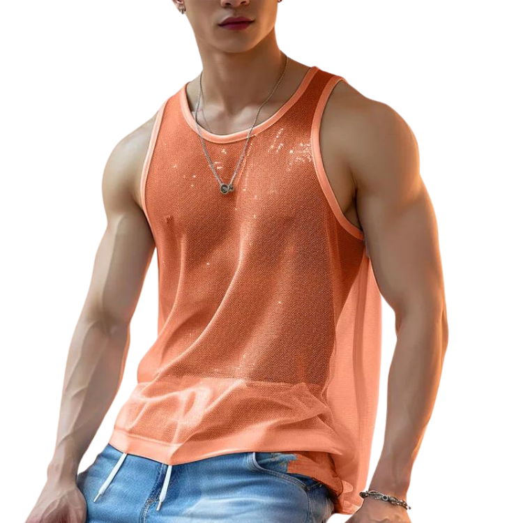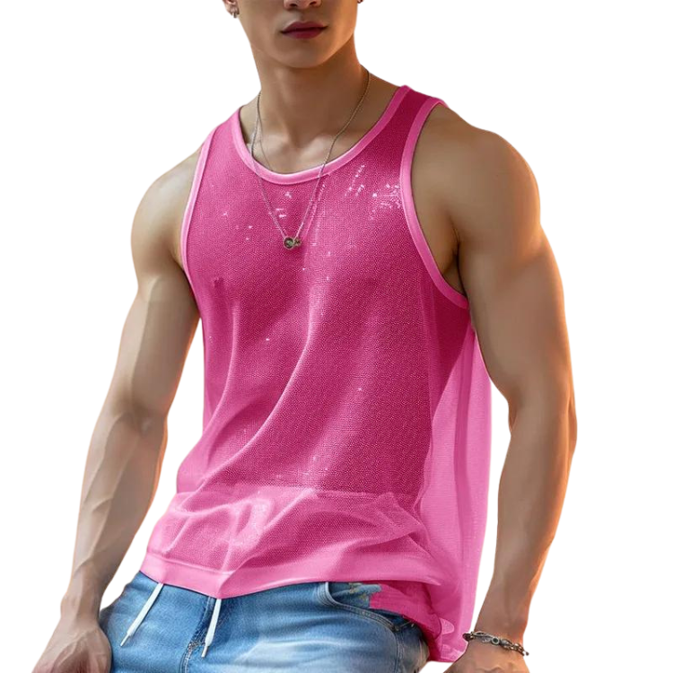 Unleash your glow with the Luminous Mesh Transparent Men's Tank—the ultimate statement piece for those who dare to shine. This isn't just a tank top; it's a spotlight on your confidence, a mesh marvel that lets you flaunt your body and your boldness at every turn.