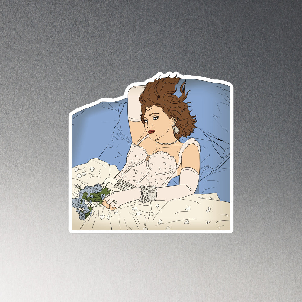 Darlings, step right up for the grand reveal of the pièce de résistance in home décor, the magnetic marvel known as the Madonna Like A Virgin Magnet.