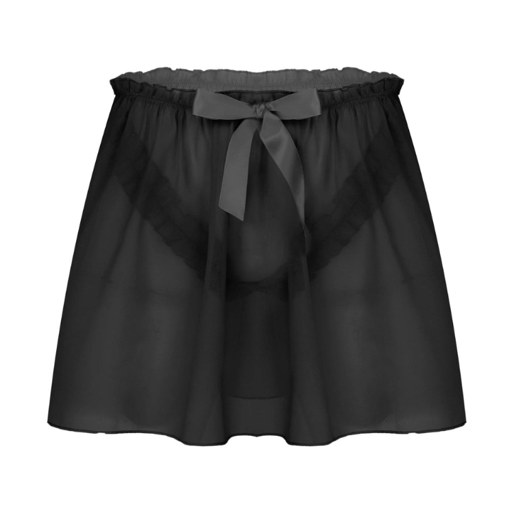 Crafted with the male body in mind but transcending boundaries like a phoenix rising from the ashes of convention, these briefs are a masterpiece of lace and lightness. The delicate material contours and caresses, offering a tantalizing glimpse of what lies beneath, while the skirted design flutters with every movement, a playful tease that speaks volumes. Whether you're channeling your inner diva at a pride parade or simply lounging in luxury, this piece promises heat, heart, and a hefty dose of sex appeal.