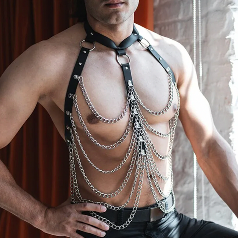 We know our fellow gay party/circuit qweens out there love to wear jaw-dropping accessories, so for them - let us introduce this luxe chain-link fetish harness.
