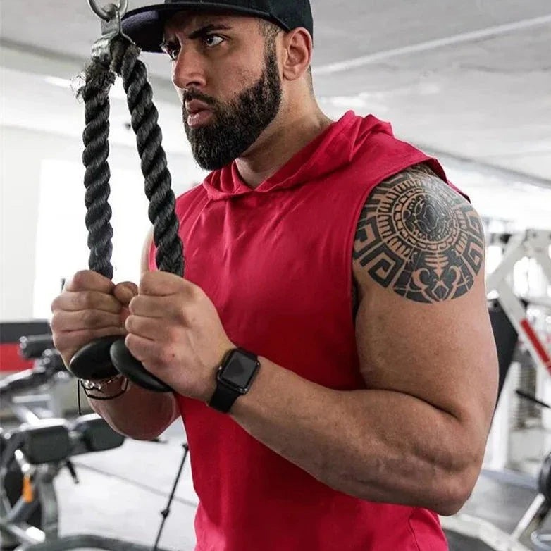 Honey, it's time to show off those guns and gains with the Men's Hooded Fitness Racerback Vest – where sporty meets spicy, and the gym floor becomes your runway.