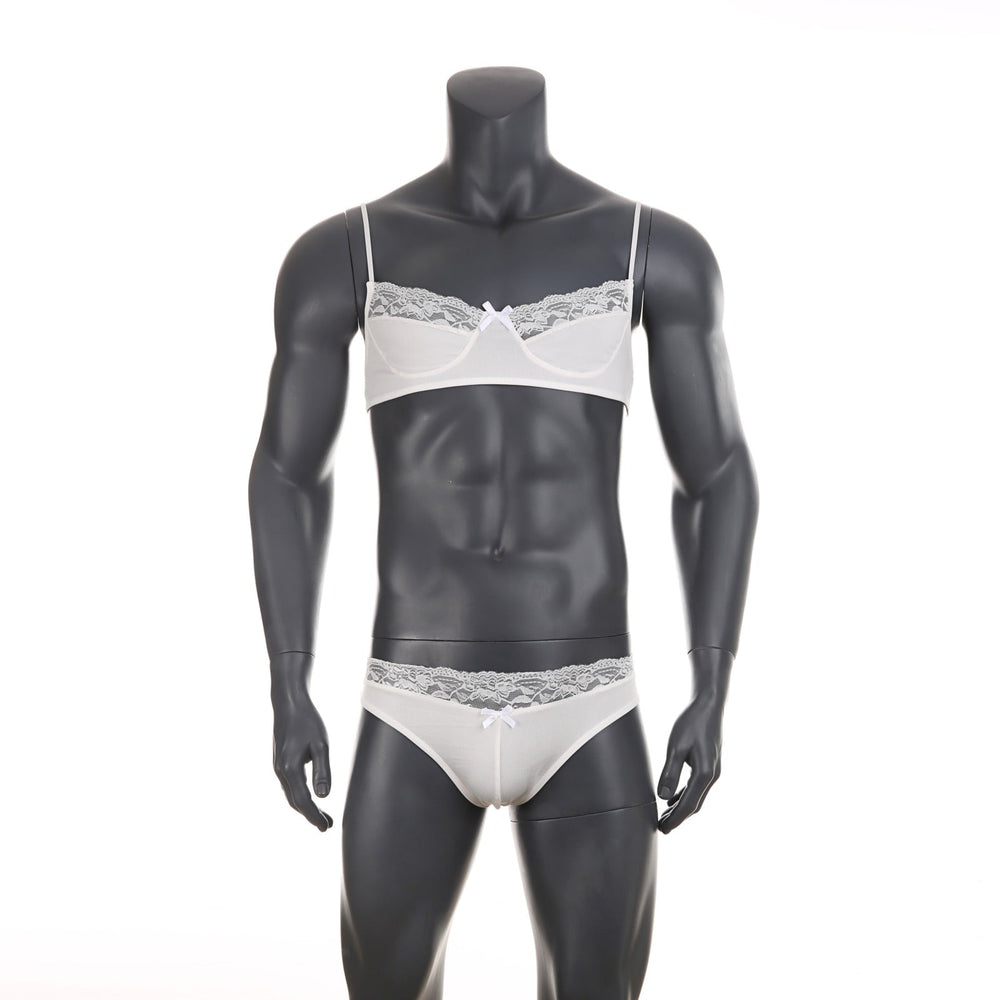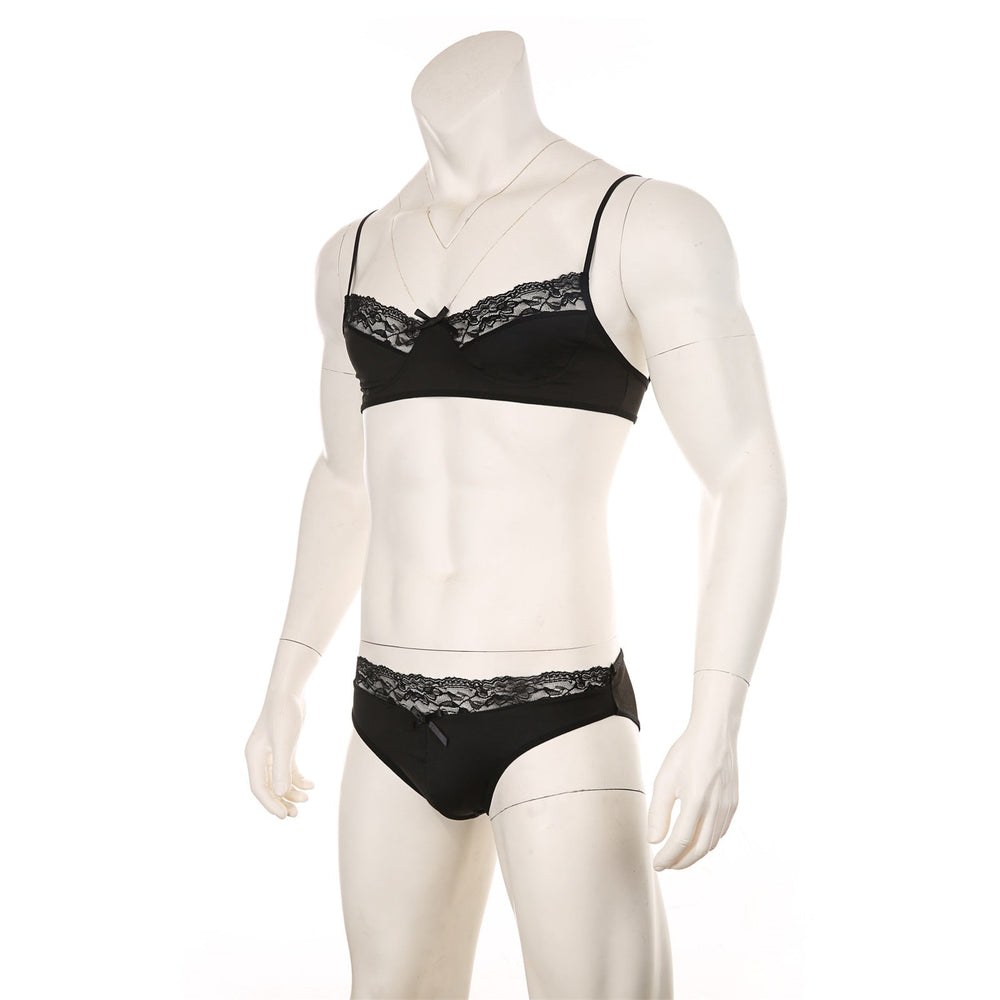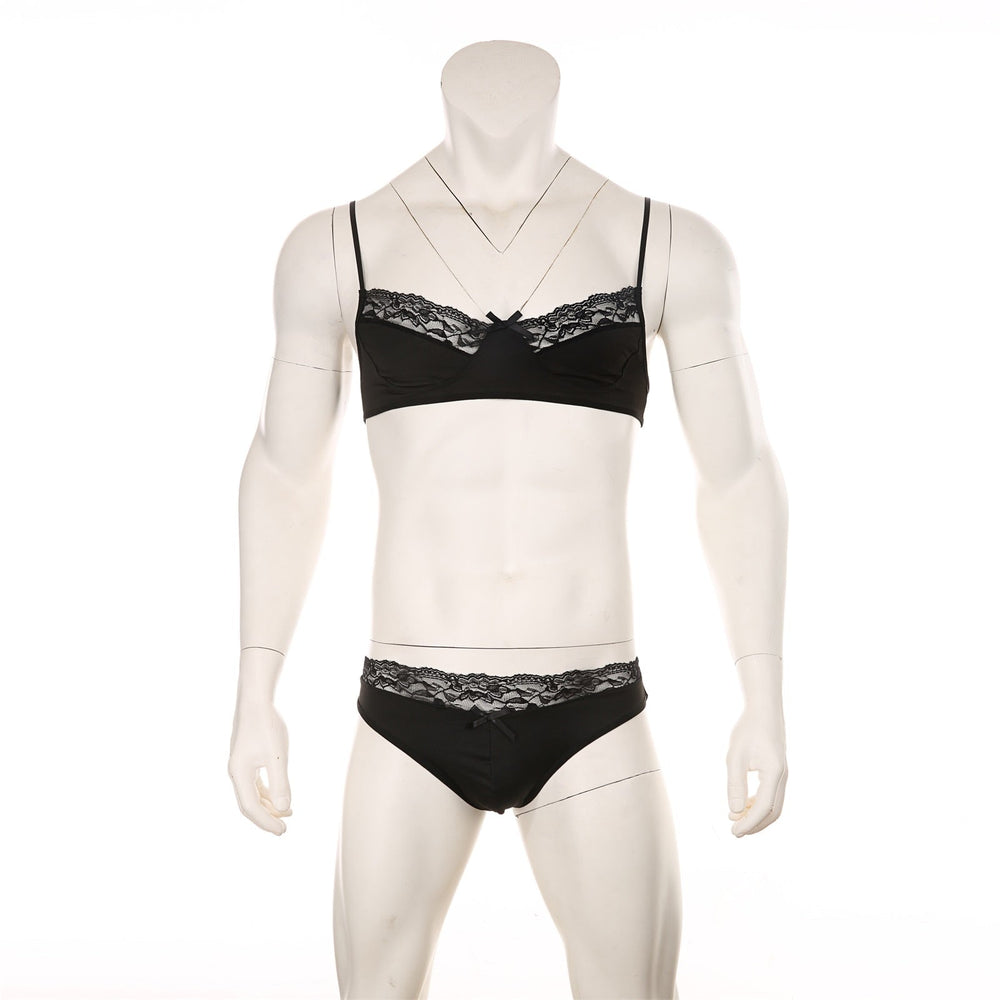Look as sexy as you feel in this Men's Lace Lingerie Panties & Bra Set. Wear it for yourself, wear it for your partner. Wear it however and whoever makes you feel good. You deserve it!