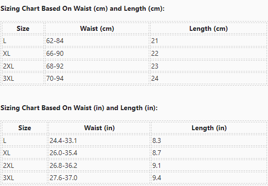 Sizing Chart Based On Waist (cm) and Length (cm):