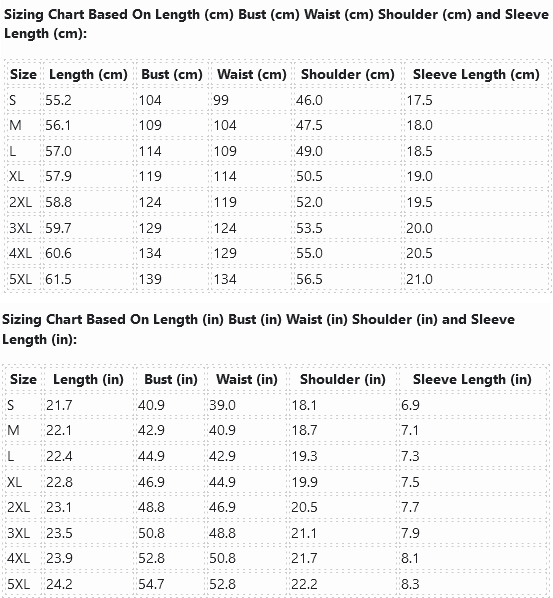 Sizing Chart Based On Length (cm) Bust (cm) Waist (cm) Shoulder (cm) and Sleeve Length (cm):