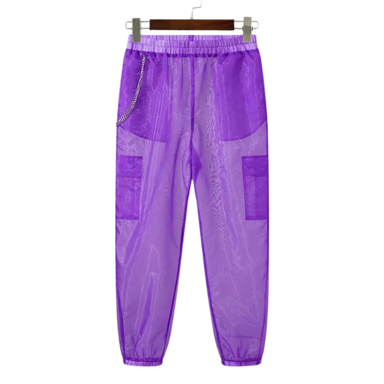 Imagine hitting the town or just strutting around your living room in these sheer marvels. With every step, you embody the spirit of pride and the essence of being unapologetically you. The Mesh Mystique Joggers are your ticket to feeling like a superstar, with the breeze teasing your skin, making every moment feel like a walk on the runway. Picture yourself as the life of the party, turning heads and breaking hearts, with pockets deep enough to carry your essentials and the boldness of your personality.
