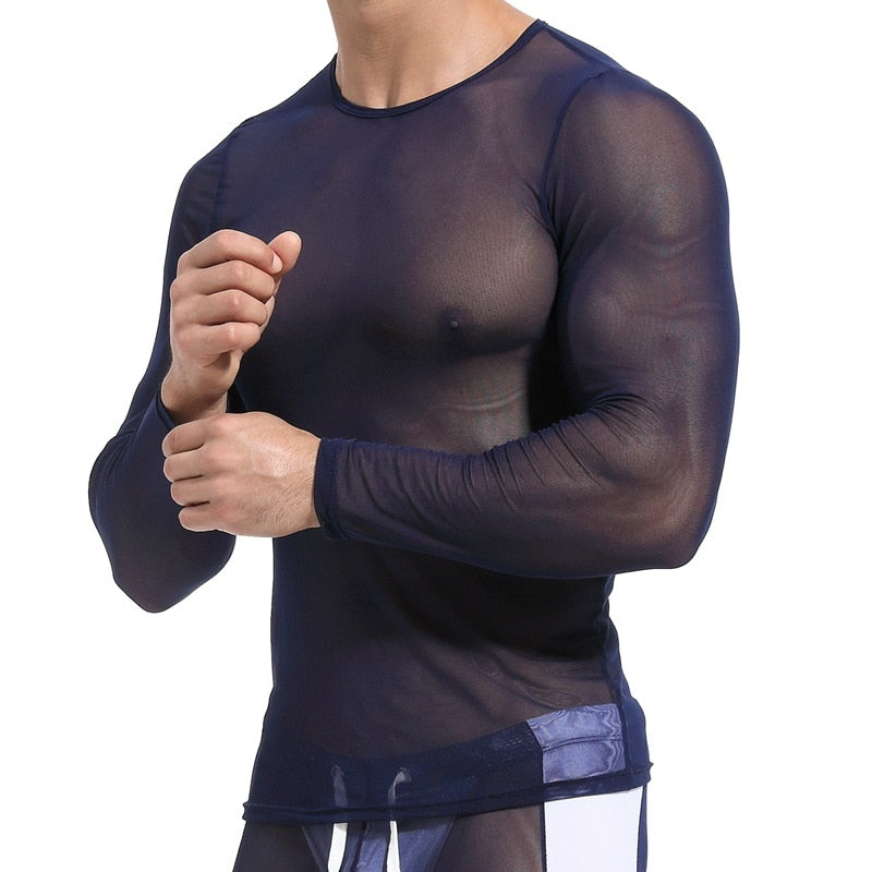 This translucent gem is the perfect blend of visibility and mystery, not unlike a queer superhero's outfit! Be it at a Lady Gaga concert, strutting your stuff amongst the little monsters, or at a pride parade, your Mesh Transparent Long Sleeve T-Shirt will set you apart as the sparkling diamond you are!