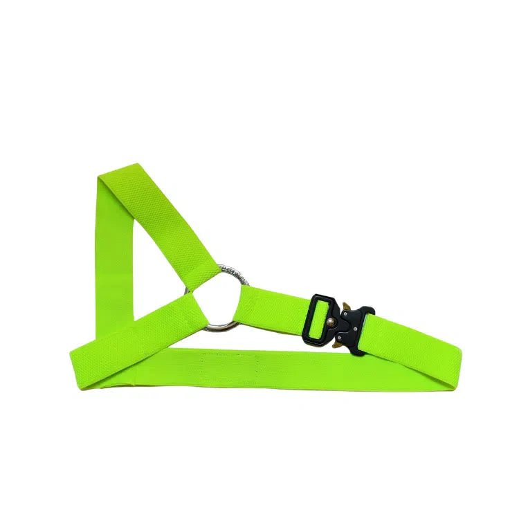 Envision yourself making a grand entrance at your next big event, the sleek polyester straps of the harness encasing your torso, each metal buckle reflecting the lights and drawing eyes to your chest. This harness is inspired by the flamboyance and extravagance of gay pop culture icons, designed to make you feel like the star you are.