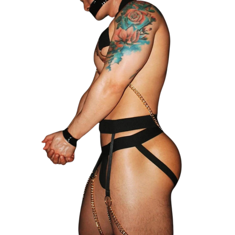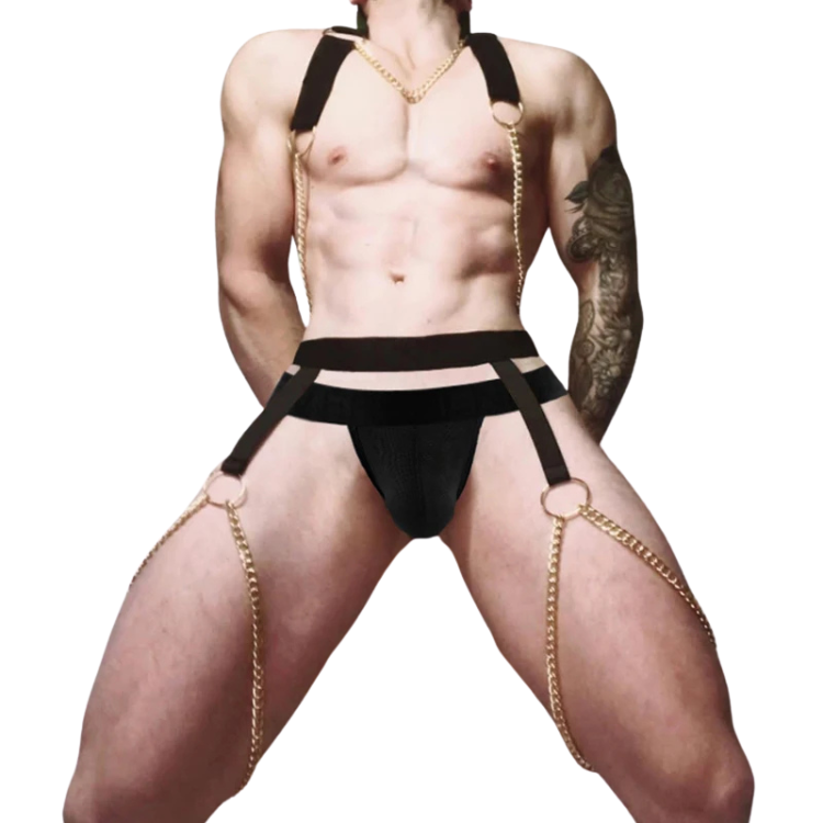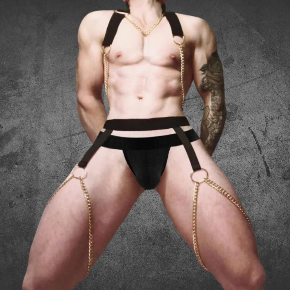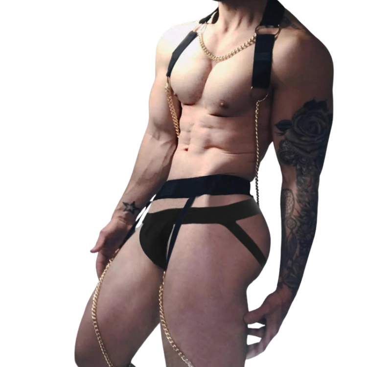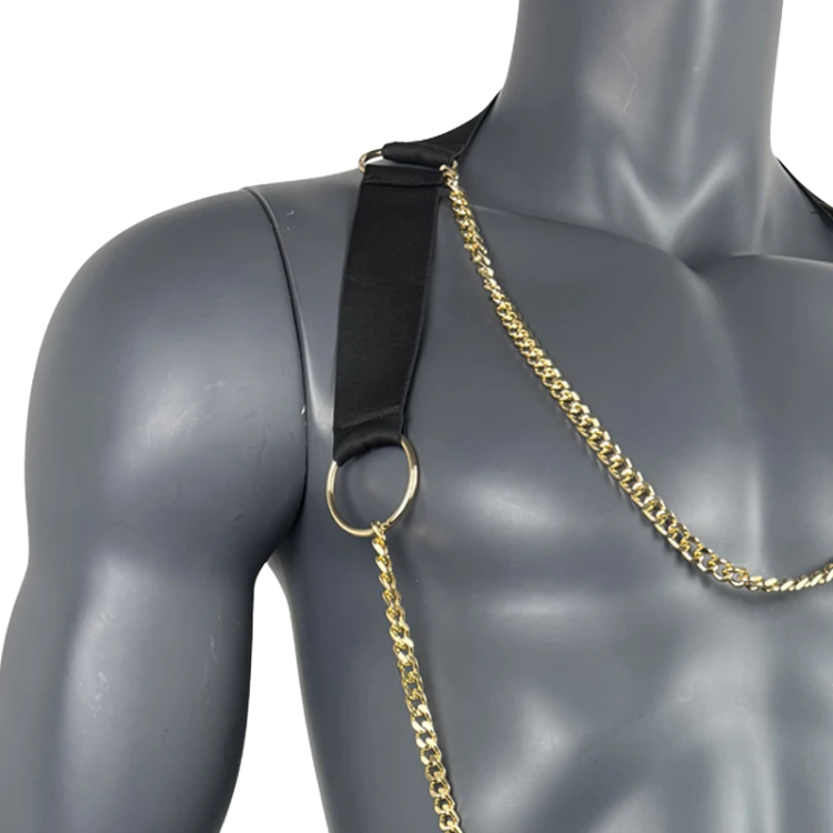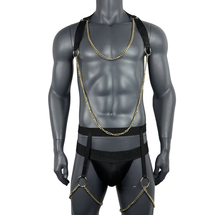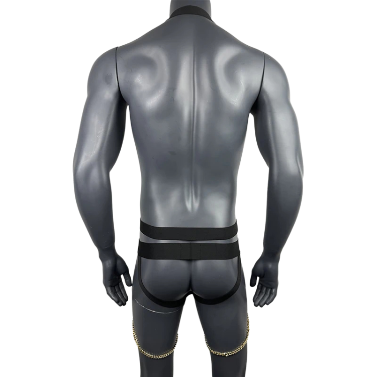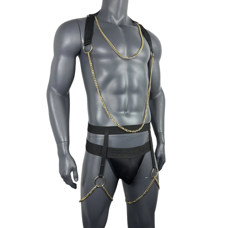 Feel every gaze lock onto you as you flaunt the sleek, body-hugging design of this harness. Crafted to highlight every contour and curve, it's perfect for strutting your stuff at any pride parade, nightclub, or intimate gathering. Channel the electrifying energy of icons like George Michael and Lady Gaga, turning heads and hearts with every step you take in this striking piece.