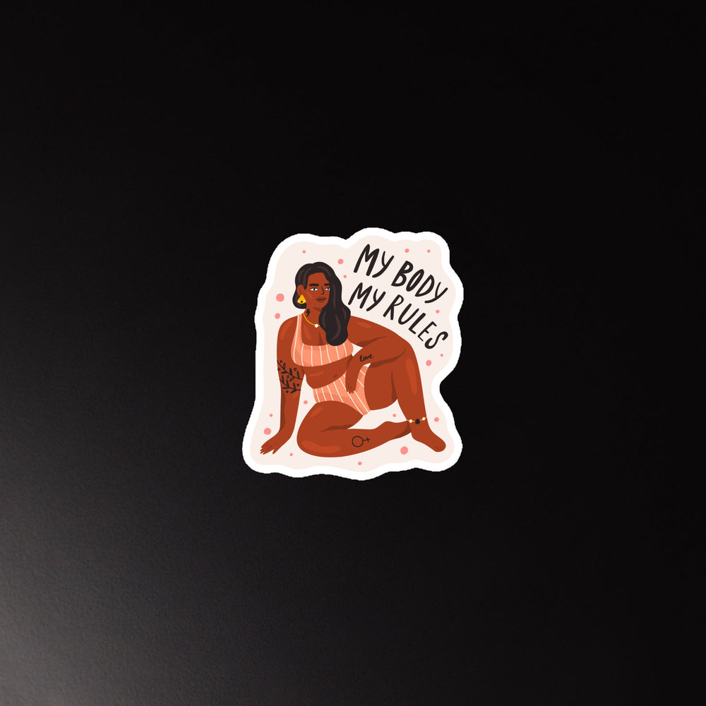 Crafted from the most supple 0.5 mm vinyl—for flexibility is our mantra—and topped with a matte finish so luxurious it could waltz down the runways of Milan, this My Body My Rules Magnet stands not just as a magnet but as a vibrant proclamation of style. Its magnetic black backing, steadfast as the legacy of legendary divas, elevates the My Body My Rules Magnet from mere functionality to a beacon of identity and elegance.