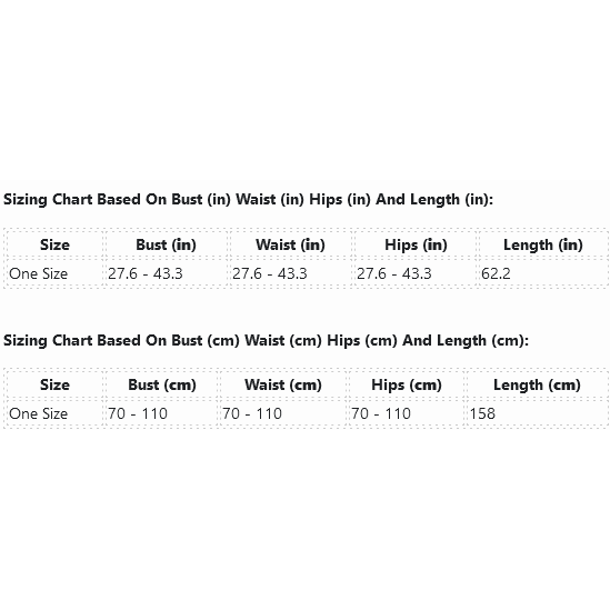 Sizing Chart Based On Bust (cm) Waist (cm) Hips (cm) And Length (cm):