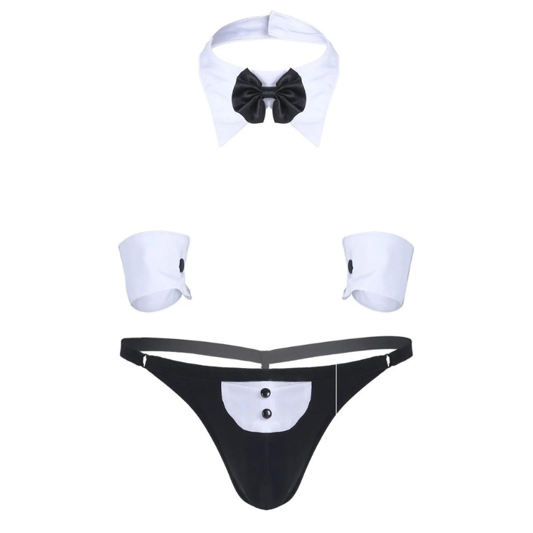 Imagine donning a piece that mixes the suave appeal of a tux with the risqué charm of lingerie. The Naked Tuxedo is where formal meets seductive, perfect for turning heads at any party or a private affair. Crafted from sleek polyester, it contours to your form, offering just enough tease while honoring your contours. It's about feeling confident and sexy, wrapped in a costume that’s as playful as it is polished.