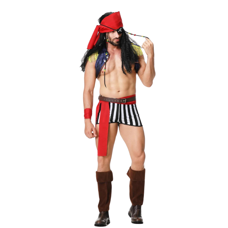 Ahoy, fabulous! Set sail on an adventure of allure and audacity with the Naughty Nautical Gay Pirate Costume Set, a treasure trove of charm designed specifically for the queer community. This costume is your ticket to not only commanding the room but also capturing hearts, as it blends swashbuckling style with a dash of daring drag aesthetics.