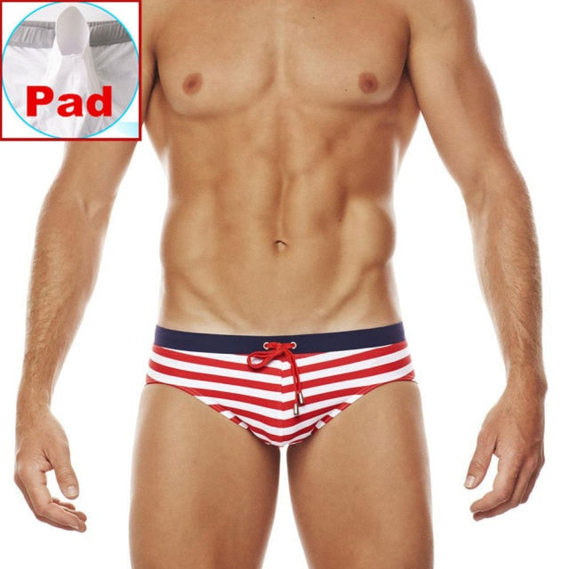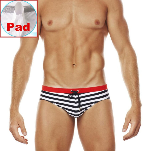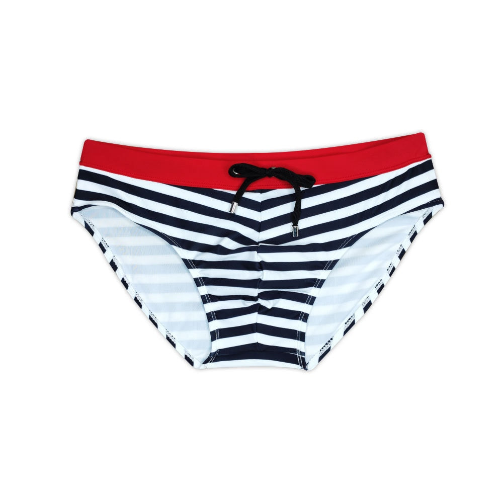Stand out at the beach, by the pool, or wherever you can get away with it — these Navy Striped Swim Briefs are a summer essential. Get yours now.