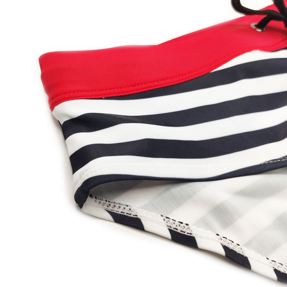 A must pack holiday item, this bold navy-inspired design of woven stretch fabric is super lightweight, quick to dry, fun, and will fit your body perfectly. Anatomically shaped to provide you with optimal comfort and to ideally flatter your silhouette, you are assured a better shape performance and a long-lasting life.