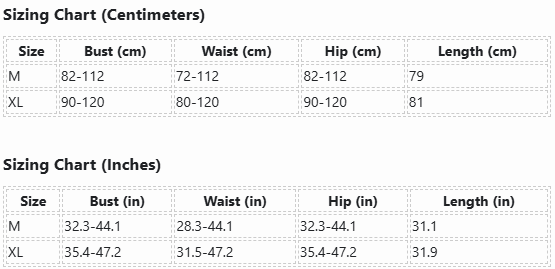 | Size | Bust (cm) | Waist (cm) | Hip (cm) | Length (cm) |