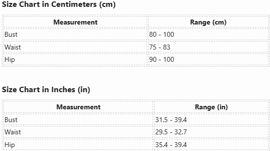 | Bust | 80 - 100 |
