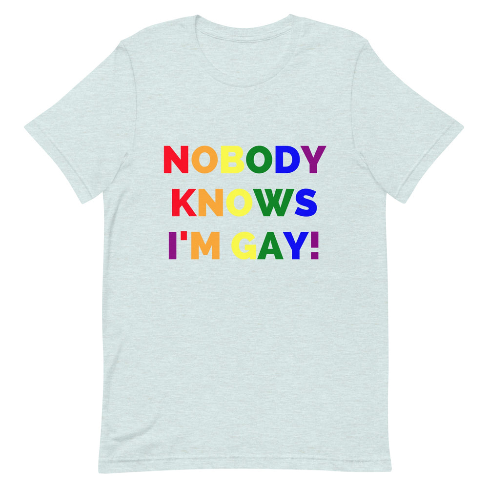 NOBODY KNOWS I'M GAY! T-SHIRT PRODUCT DETAILS