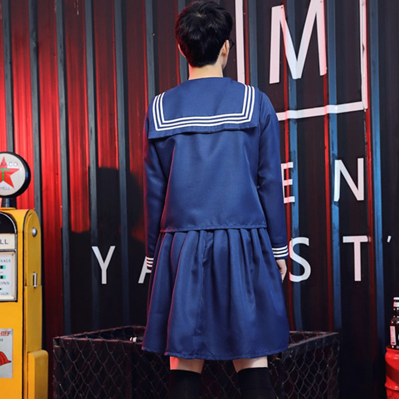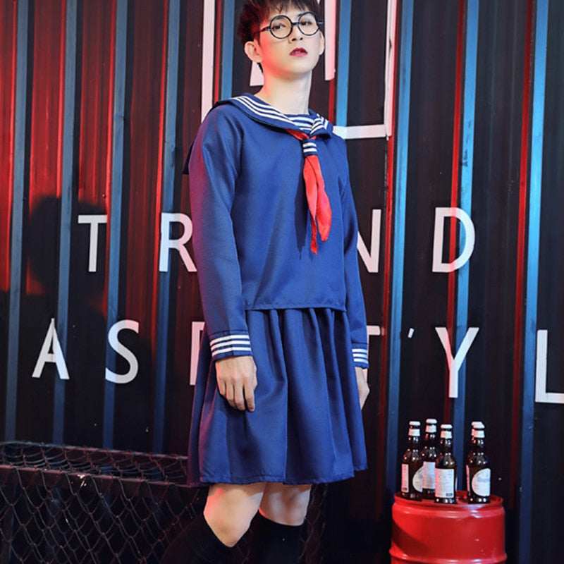 Originally designed for Japanese high school girls, the outfit can easily be transformed into a queer dream that will teleport you into your favorite Japanese Anime series.