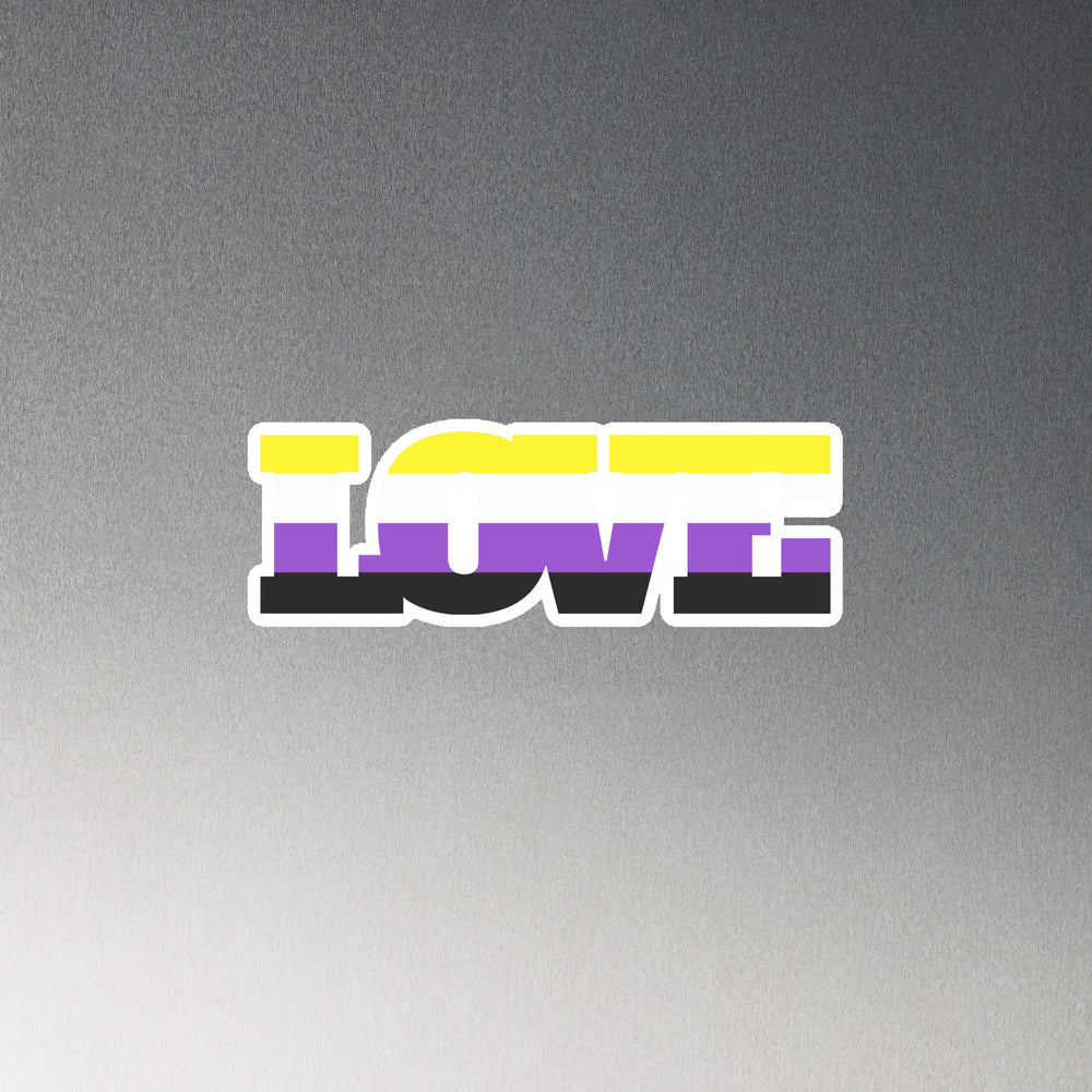 Crafted from the most supple 0.5 mm vinyl—for flexibility is our mantra—and topped with a matte finish so luxurious it could waltz down the runways of Milan, this Non-Binary Love Magnet stands not just as a magnet but as a vibrant proclamation of style. Its magnetic black backing, steadfast as the legacy of legendary divas, elevates the Non-Binary Love Magnet from mere functionality to a beacon of identity and elegance.