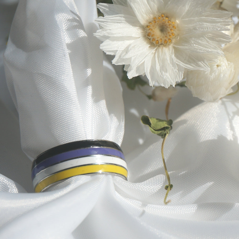 Whether you're out on the town or just lounging at home, this ring is the perfect accessory to flaunt your non-binary pride. So what are you waiting for? Get ready to slay the day with this fabulous Non-Binary Pride Ring!